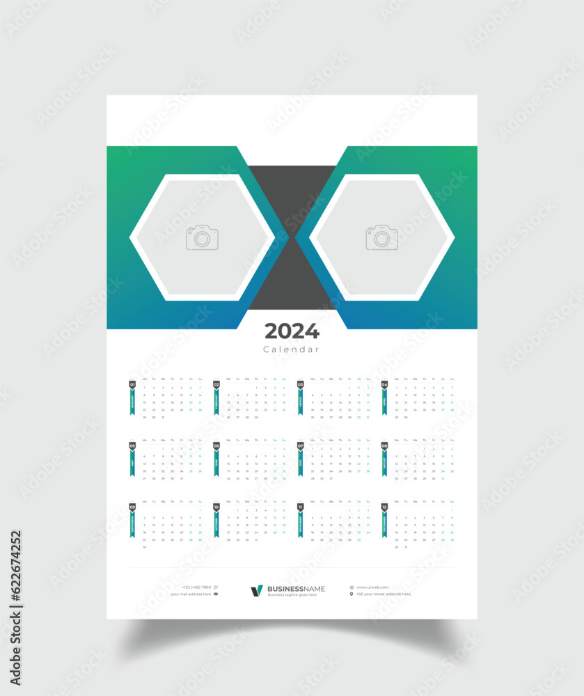 Modern Wall Calendar 2024, One page Wall Calendar 2024 Stock