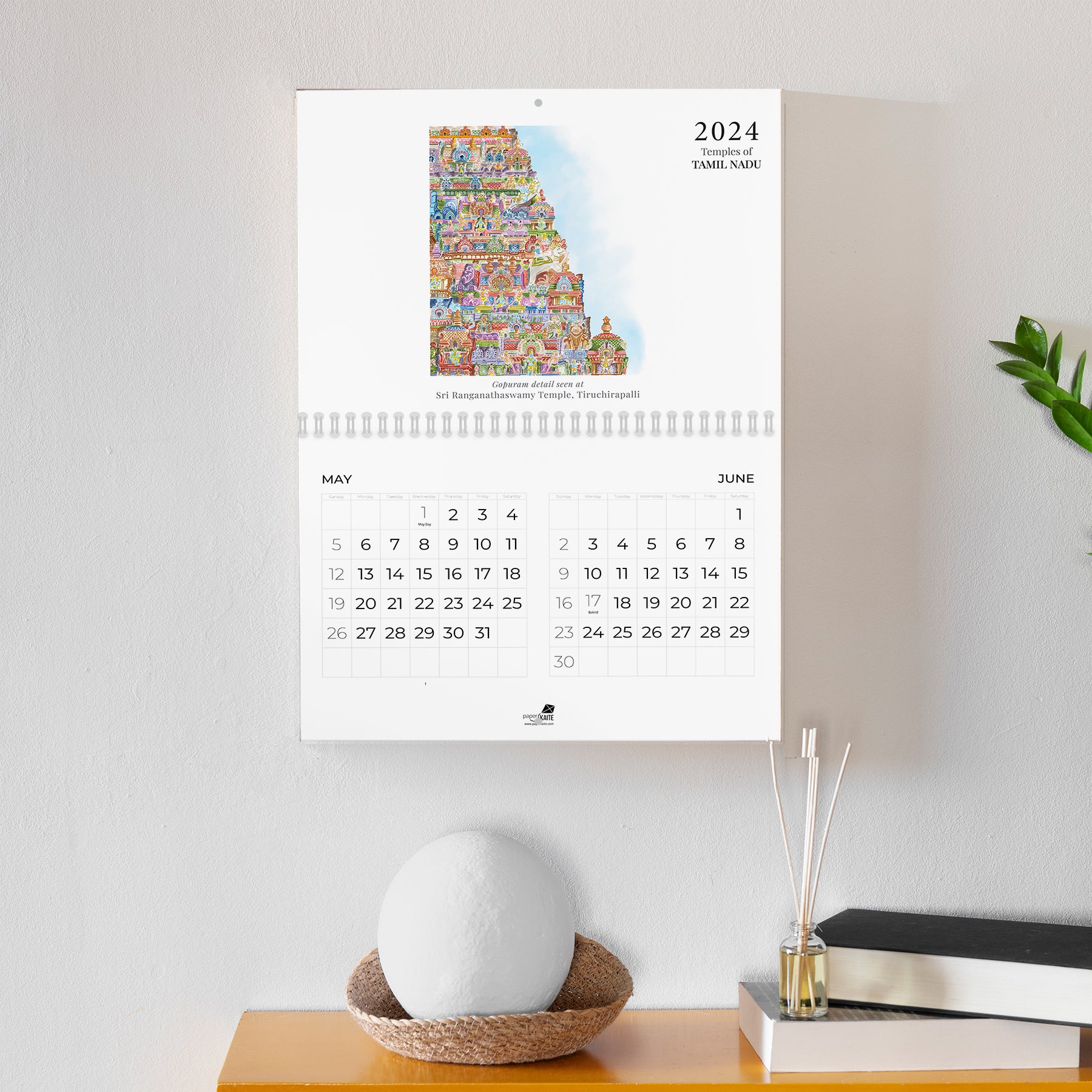 2024 wall Calendar temples of Tamil Nadu India Painted souvenir